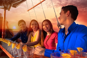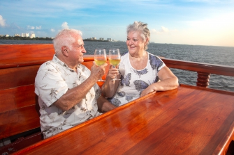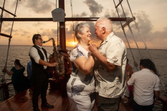 Enjoy a Magical Sunset on the Cancun Lagoon Aboard a Spanish Galleon. Savor a lobster or steak dinner with live saxophone music and an unforgettable experience under the stars.