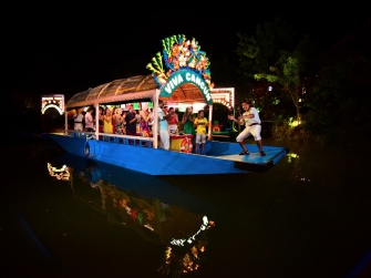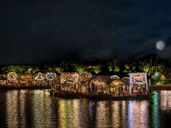 Xoximilco offers a cultural and festive experience in the Mayan jungle through a nighttime ride on colorful trajineras (gondola-like boats). During the journey, visitors can enjoy a traditional menu, unlimited drinks from the bar, mariachi music, and the lively atmosphere of an authentic Mexican party in a watery setting.