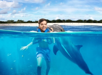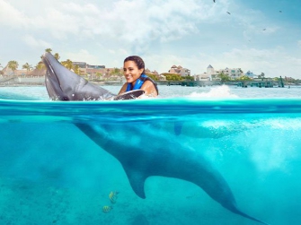 An exclusive and personalized experience that deepens the relationship with dolphins. Accompanied by a specialist, participants interact with two dolphins in immersive activities that engage all five senses. The program's highlight is an individual time in deep water, swimming alongside both dolphins, in an experience designed to inspire and foster a deep and transformative bond, always guided by the principles of respect and animal welfare. Additional benefits are offered depending on the habitat, such as VIP areas, a catamaran ride, a buffet, an open bar, and encounters with other marine mammals.