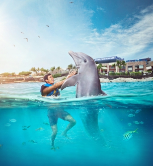Get all the perks included in our Royal Garrafon package and the chance to bond with a friendly dolphin.