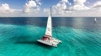 The best option for you if you want to spend just a few hours sailing, accompanied by snacks on board, Premium open bar, free time in Isla Mujeres and enjoy the beautiful Caribbean Sea.