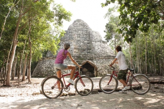 On our prestigious tour, our visitors can enjoy the wonders of this archaeological site in a perfect combination of activities with our Cultural or Adventure attractions. This afternoon tour offers a very exclusive experience. We visit the Mayan city of Coba, with its magnificent main pyramid, the tallest in the Yucatan Peninsula. It is located in the middle of the majestic Mayan jungle and surrounded by beautiful lagoons. You will tour the site accompanied by a guide certified by the INAH (National Institute of Anthropology and History).