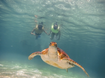 Enjoy a snorkeling tour in the Bay of Akumal in search of 3 of the 7 species of sea turtles in the world, accompanied by the beautiful barrier reef where you can discover the infinite variety of marine fauna of this region.