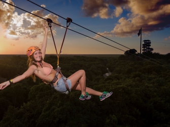 The jungle comes to life from sunset with the Xplor Fuego Tour, in which the setting sun and later the torches light the way to an incomparable adventure that awakens the most primitive side of everyone who dares. Let yourself be amazed by the lighting and atmosphere of the zip line towers, where the jungle is gently lit by torches, bonfires. The sounds of the jungle will awaken your senses, they will keep you alert so that you can enter a new world full of adventure, where night and fire will be your best company. Delve into the darkness of the jungle and immerse yourself in the refreshing waters of an underground river, contemplate the bonfires that will stoke your inner fire, live with the nocturnal fauna and let the light of the moon and the stars guide your way in the gloom. Follow your instincts and get ready because the night is dark and full of mysteries that await you. Light up your life with Xplor Fuego; a challenge in the dark like you never imagined..